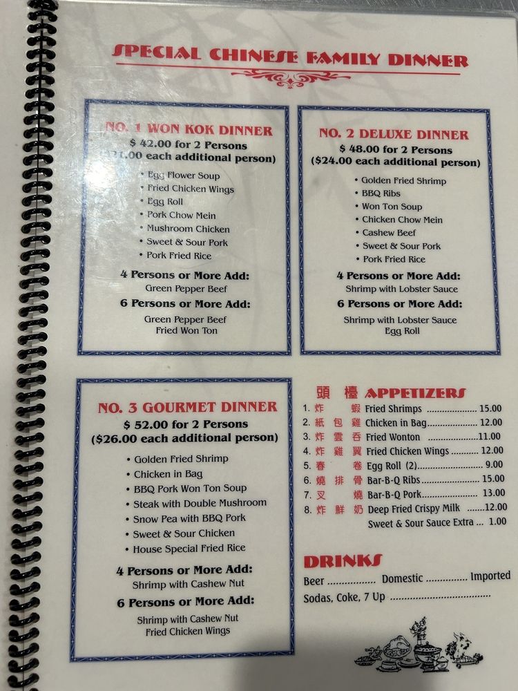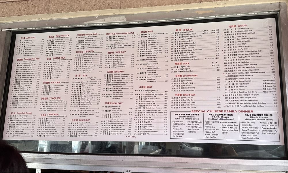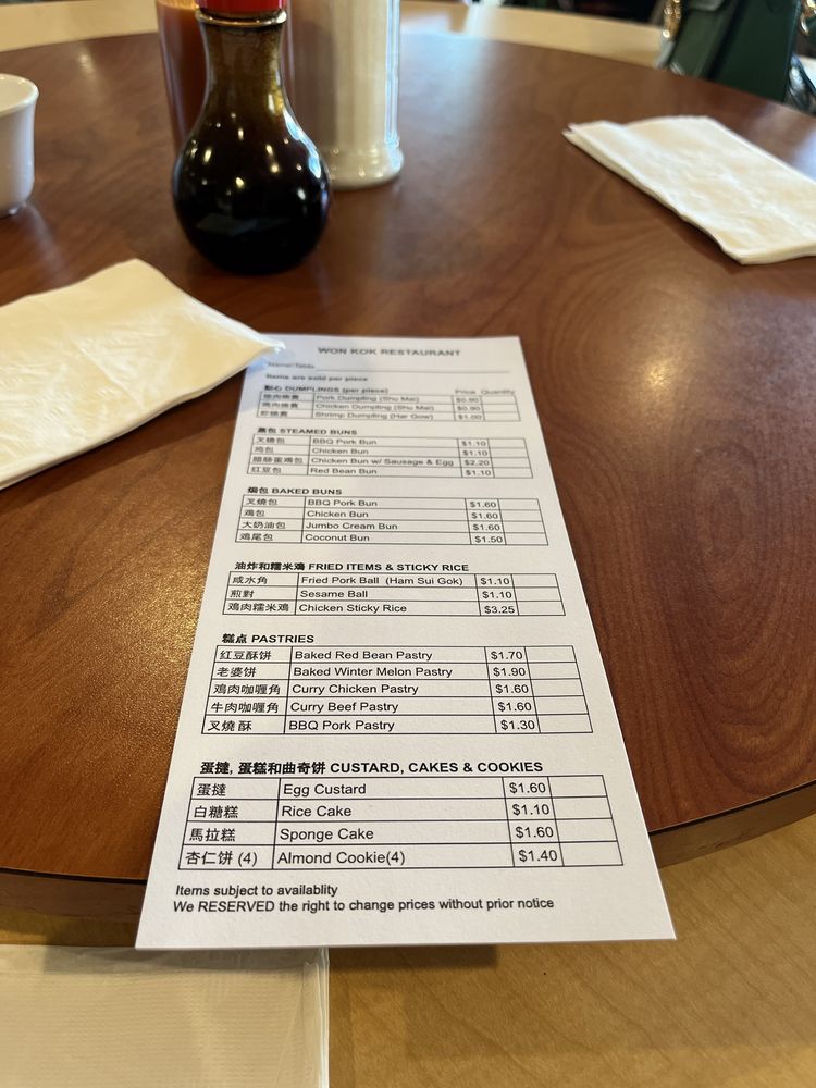 Introducing the menu at Won Kok Restaurant, a beloved Chinese spot in LA, offering a wide range of dishes. Known for its fast dim sum takeout and authentic sit-down experience, customers rave about the delicious food and friendly service. The menu includes favorites like pork dumplings, shrimp dishes, and traditional buns. With incredibly low prices, it's a go-to spot for budget-friendly dining. While the seating area may not be the most luxurious, the quick service and fresh, hot dishes make up for it. Don't miss out on trying the steamed BBQ pork buns, red bean sesame balls, and sweet cream filled buns. Overall, Won Kok Restaurant is a must-visit for Chinese food lovers looking for a tasty and affordable dining experience.